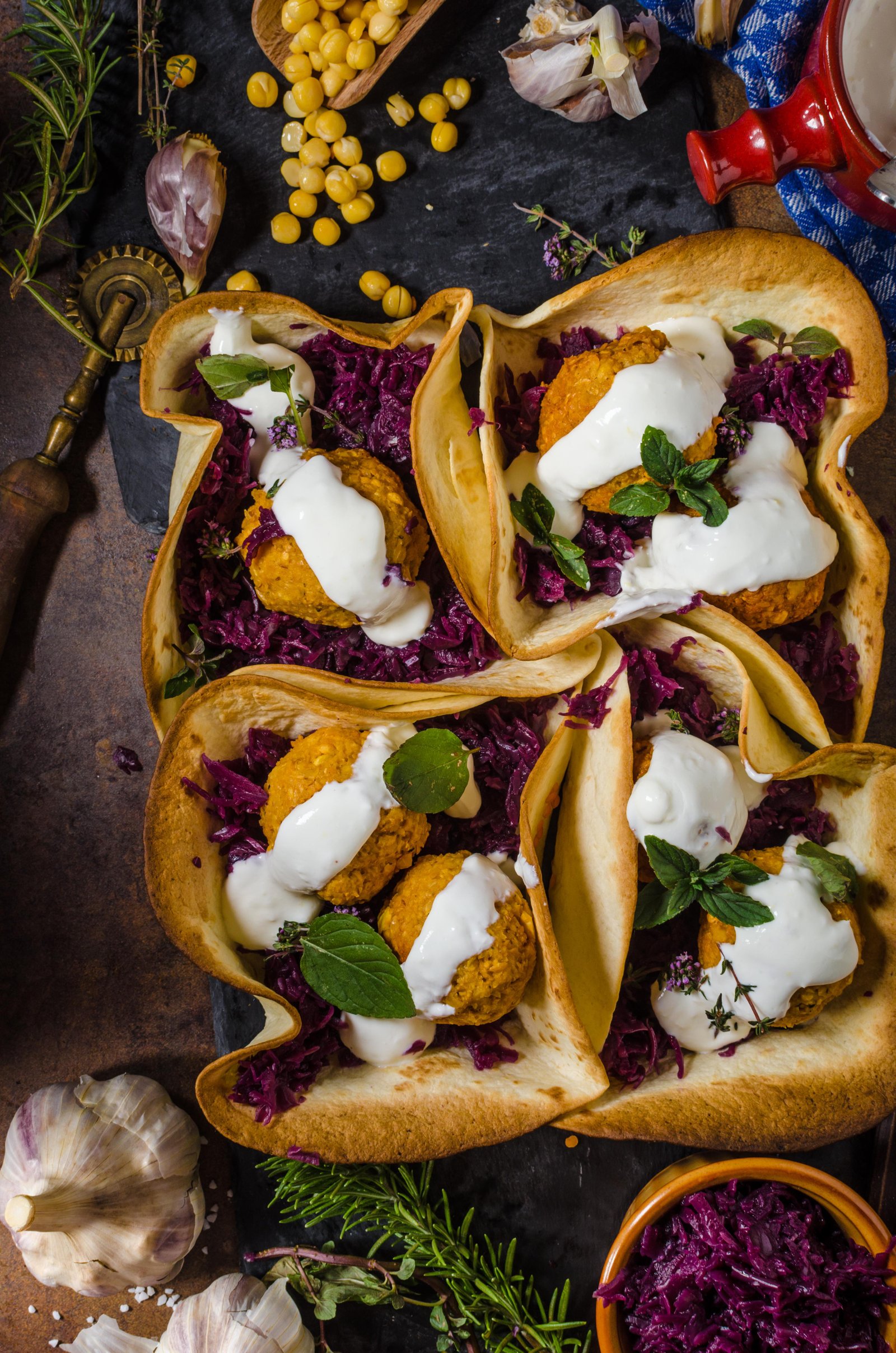 Falafel with herbs and cabbage